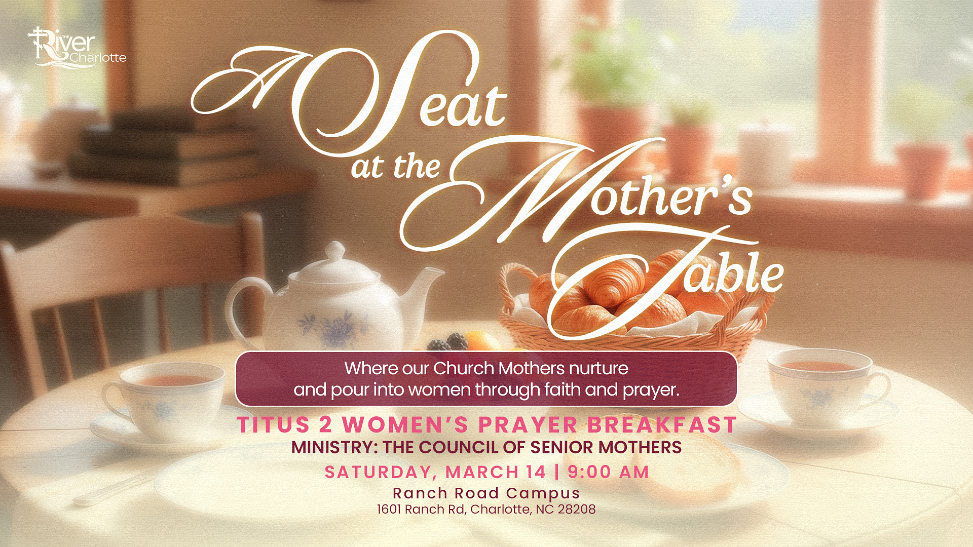Join the Council of Senior Mothers for “A Seat at the Mother’s Table,” a special Titus 2 Women’s Prayer Breakfast. This ministry event is a nurturing time where our Church Mothers pour into women through faith and prayer, just as described in the Bible. Come be encouraged, nourished, and empowered.